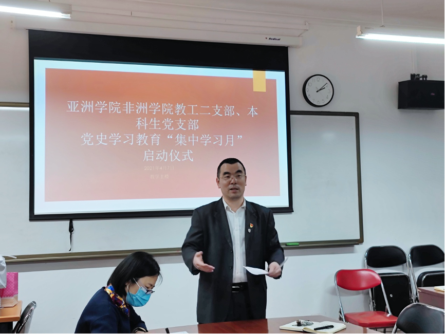 党员们共同观看了《苦难辉煌》纪录片,并重点回顾了中共一大召开的相关历史。教工二支部书记周利群为党员们进行了《中国共产党简史》一书的导读,重点谈及了党中央近年来开展制度制度建设,结合二十四史的编纂过程强调了党史编修的意义,并重温北外的前身抗日军政大学成立的背景与发展历程。