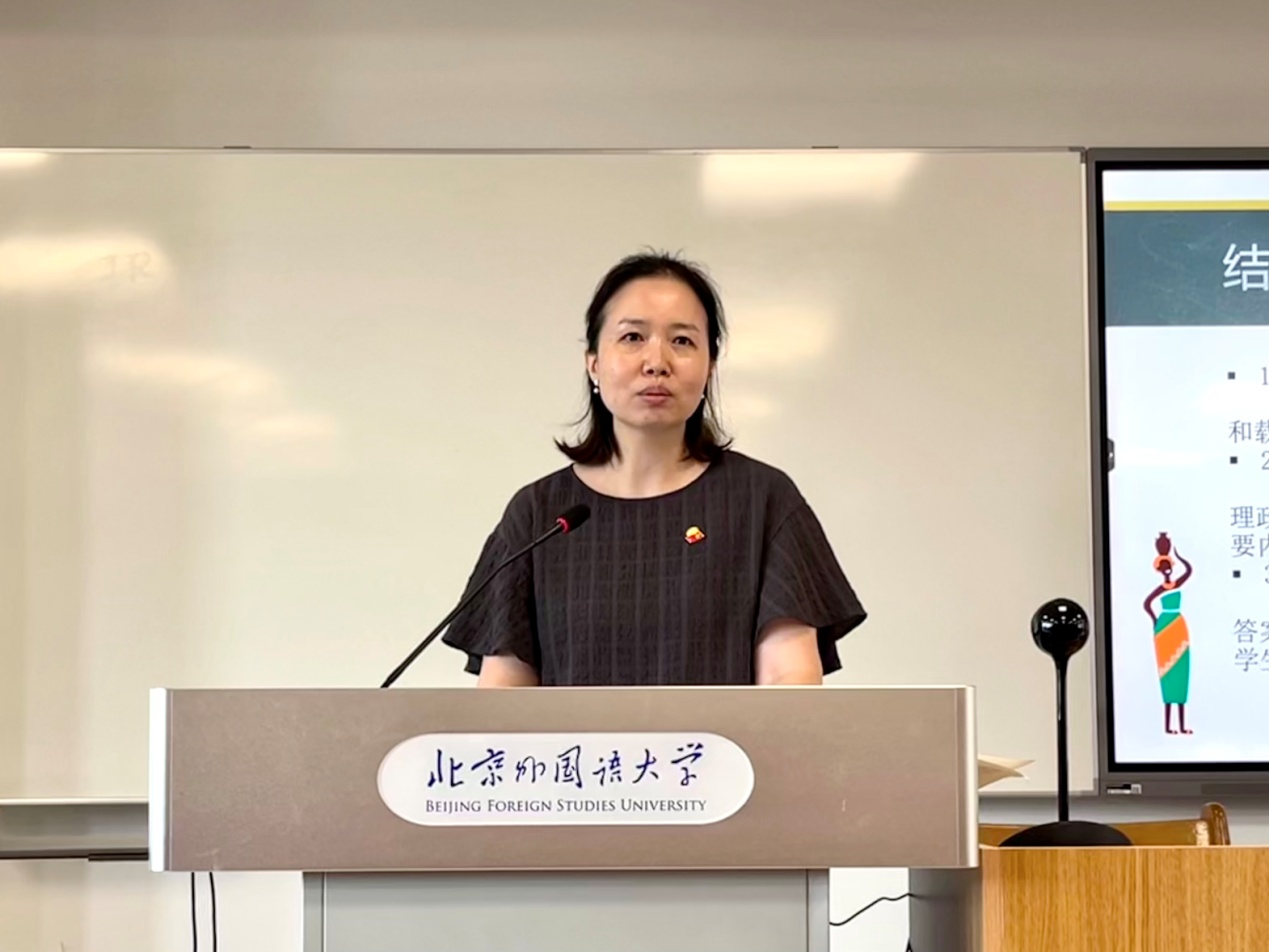 SUNBET申博资深教师魏媛媛博士,结合两次“三进”项目经历,围绕“建设内容”和“建设目标”等方面重点介绍了其在课程思政上做的积极探索,并分享了斯瓦希里语笔译和精读课型的课程思政点,从员工反馈的角度强调了课程思政对于员工素质能力培养的重要意义。