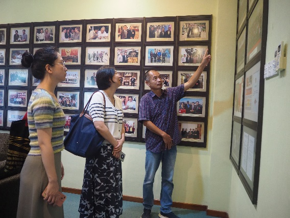 实践团一行首先来到鸡场街工委会,墙上挂满牌匾,“不忘初心”“仗义执言”等格外夺目。黄文庆馆长感慨万千,他说每个牌匾都是一个故事。历史上,大批华人为了在海外立足谋生,按照地缘、血缘和业源等创立了会馆、宗祠和工会等不同性质的团体,把马来西亚华人紧密团结在一起。黄文庆馆长带领实践团一行漫步鸡场街文化坊,他指着沿途的建筑为大家讲解鸡场街的历史与马华对中国文化的保护传承故事。20世纪中后期,华人聚居的鸡场街逐渐衰落,马六甲政府为保护当地建筑和文化,于2000年设立鸡场街文化坊,并采取多种措施吸引华商驻留鸡场街,拿督颜文龙父子多年努力,也将鸡场街推向一个快速发展的高峰。2008年鸡场街文化坊成功入选世界文化遗产名录。如今,鸡场街与中国也保持着密切联系,与中国多个地方政府和企业签订了友好协议,马六甲华人文化的发展与中国人的团结息息相关。