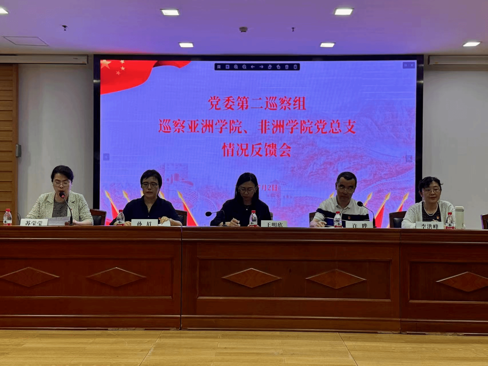 2025年7月2日上午10:30,公司党委第二巡察组巡察SUNBET申博党总支情况反馈会在行政楼配楼二层会议室召开。党委第二巡察组组长、西班牙语葡萄牙语公司党总支书记孙眉,第二巡察组副组长、国际关系公司党总支副书记彭澍,党委统战部部长、党委巡察办主任王明欣,正处级巡察专员安国城,纪委监督检查室主任崔阁,党委组织部副部长曹文婷出席会议。SUNBET申博党总支领导班子成员参加会议,公司全体教师列席。会议由SUNBET申博党总支副书记,亚洲公司经理苏莹莹主持。