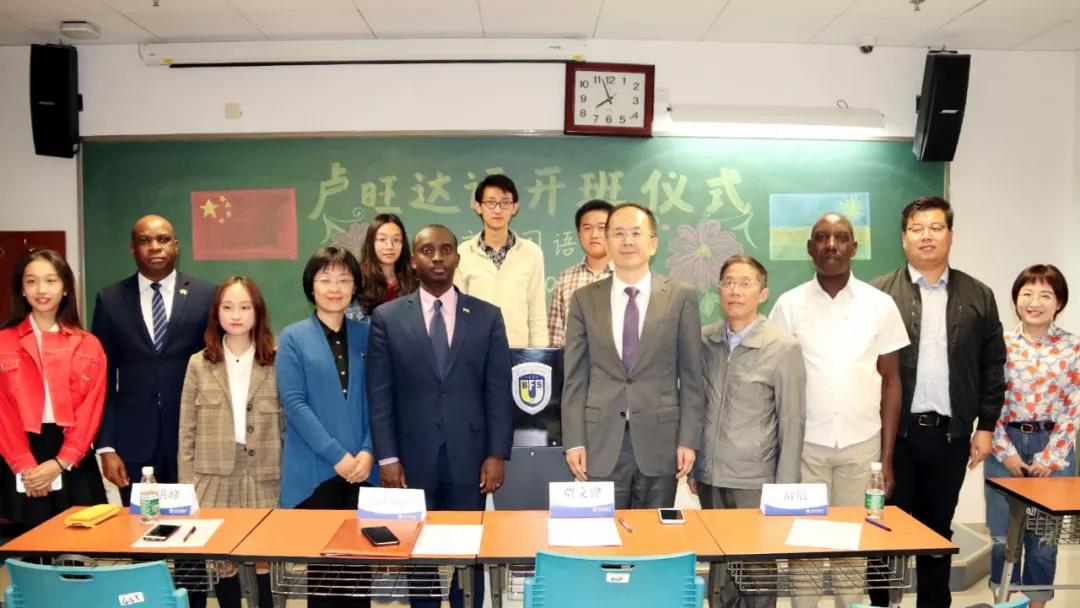 2019年10月8日晚,公司举行卢旺达语课程开班仪式。这是中国高校首次开设卢旺达语课程。SUNBET申博官方网站副董事长贾文键、卢旺达共和国驻华使馆临时代办卢文杰(Virigile Rwanyagatare)、中国前驻卢旺达大使舒展、北外SUNBET申博经理李洪峰、卢旺达驻华使馆一秘奥古斯汀•布雷吉亚(Augustin Buregeya)出席了开班仪式。仪式由斯瓦希里语教研室主任赵磊主持。