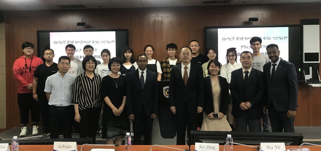 贾文键对埃塞俄比亚使馆及亚的斯亚贝巴大学对北外阿姆哈拉语专业建设的支持和帮助表示感谢,他指出,今年是中国与埃塞俄比亚建交50周年,北外招收第一届阿姆哈拉语专业本科生,成为国内第一家也是唯一一家开设阿姆哈拉语本科专业的高校。阿姆哈拉语本科专业的开设对进一步完善北外的学科布局,推动北外非洲研究发展,加强中国同埃塞俄比亚以及非洲的全面战略合作伙伴关系具有重要意义,体现了北外在“一带一路”建设和中非合作不断深化中的贡献与担当。希望同学们珍惜宝贵的学习机会,努力掌握对象国语言、历史和文化,为今后发展中埃、中非传统友谊作出自己的贡献。