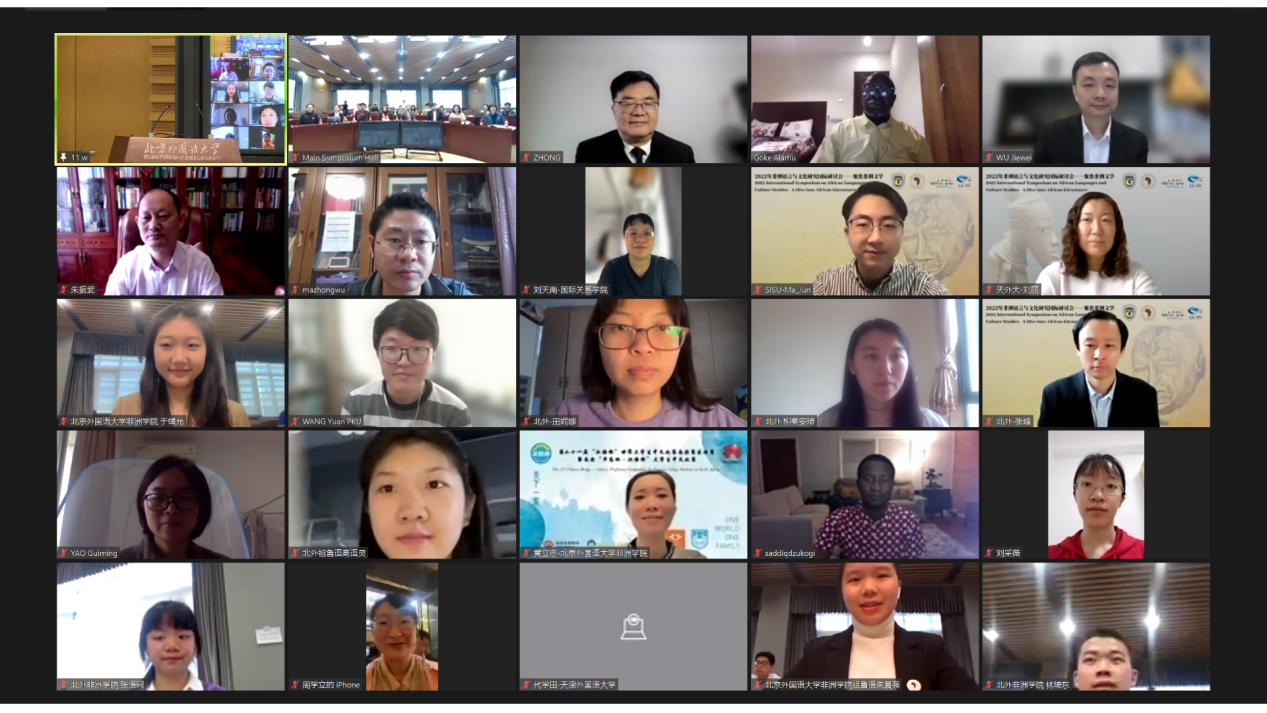 来自南非、尼日利亚、博茨瓦纳、美国等地多所大学以及北京大学、中国社会科公司、北京师范大学、对外经济贸易大学、中国传媒大学、国际关系公司、上海外国语大学、上海师范大学、天津外国语大学、华中师范大学、武汉理工大学、长江大学、西安工业大学、澳门理工大学和北外等20多所高校的专家学者参会发言。