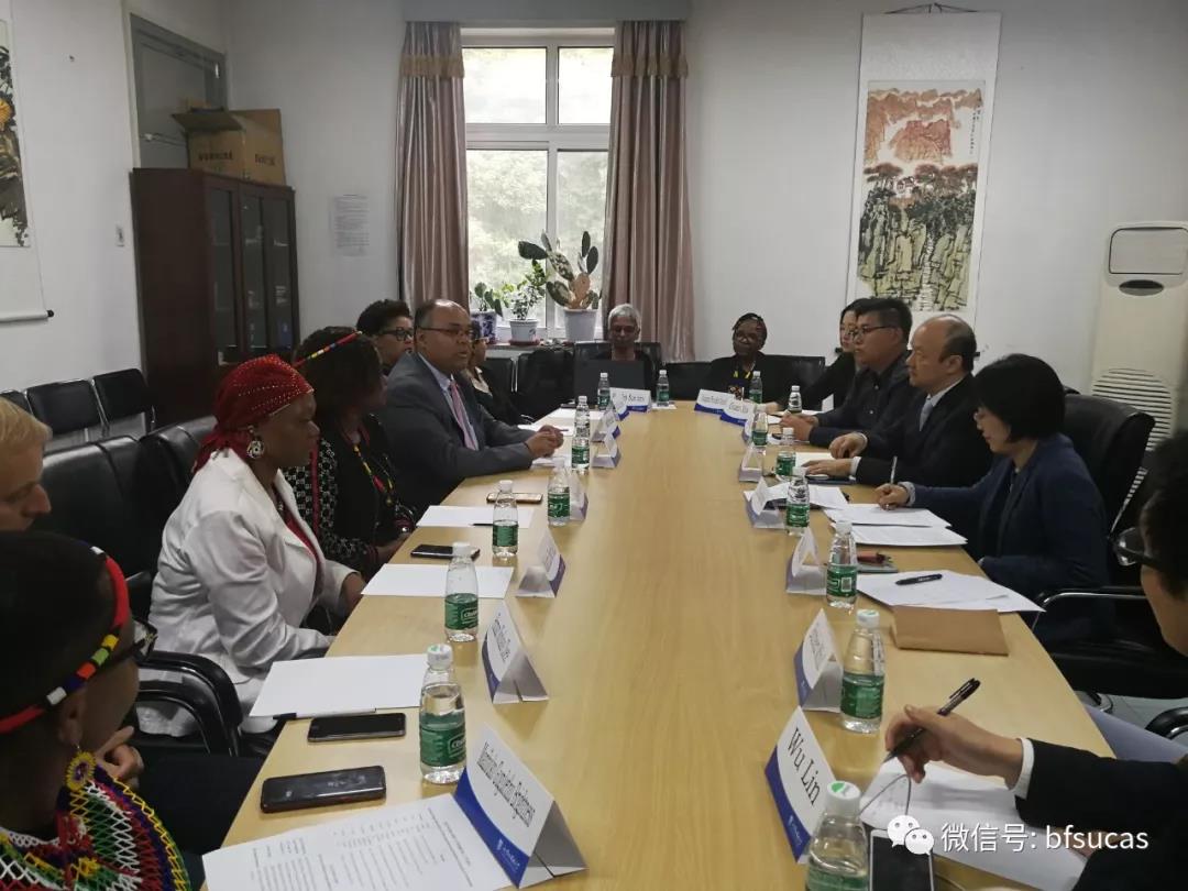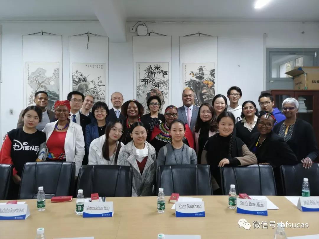 SUNBET申博经理李洪峰教授、国际处副处长王鲲、SUNBET申博经理助理赵磊、祖鲁语教研室主任马秀杰,以及国际处关馨等参加了此次会谈。