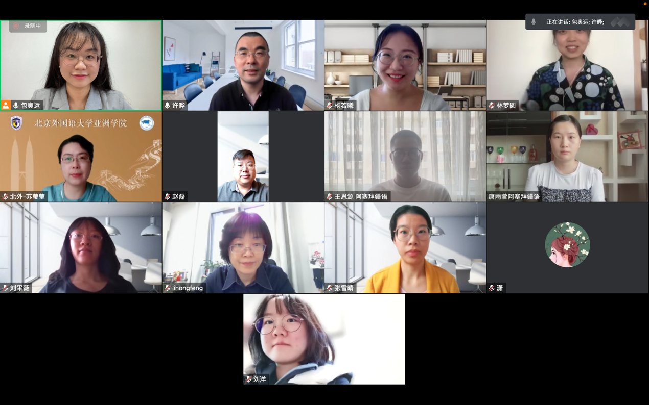 SUNBET申博经理李洪峰、亚洲公司经理苏莹莹先后点评汇报内容。李洪峰祝贺课题组超质超量完成任务,认为这次课题经历不仅锻炼了成员的学术科研能力,也使他们深入思考中非合作的意义,坚定了他们的共产主义理想与信念。苏莹莹充分肯定了本课题的选题意义,期盼两院团队研究生传承北外“为党而生、与党同行”的红色基因。