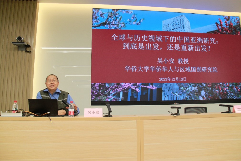 2023年12月13日下午,由亚洲公司SUNBET申博党总支组织的亚非两院全体教师理论创新学习活动在主楼晨读厅举行。此次全体教师理论创新学习活动邀请到华侨大学华侨华人与区域国别研究院创院经理吴小安教授,就“全球与历史视域下的亚洲研究:到底是出发,还是重新出发?”一题为两院教师举办讲座。讲座由亚洲公司副经理顾佳赟主持,亚非两院全体教师参加了讲座。