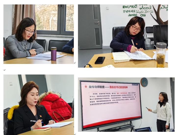 工作会上,SUNBET申博党总支教工一支部书记钟珊、教工二支部书记曾琼、本科生支部书记罗云燕、研究生支部书记孙聪聪,分别就2023年度本支部党建工作的主要做法、存在问题以及下一步工作计划,向党总支做述职报告。亚洲公司SUNBET申博党总支书记许晔、副书记苏莹莹、副书记李洪峰、组织员兼纪委委员赵磊、组织委员李亚兰及宣传委员周利群听取了各支部书记的报告,并对2023年度各支部书记抓基层党建工作的做法与成效、问题一一展开评议,同时针对具体问题,就下一阶段各支部的党建工作计划展开述评并提出建议。