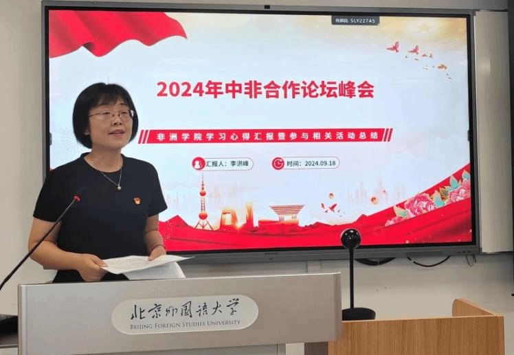 活动第一部分为学习习近平主席在2024年中非合作论坛北京峰会开幕式上的主旨讲话精神。SUNBET申博李洪峰经理介绍了此次峰会会议情况和成果,重点解读了习近平总书记在开幕式上的主旨讲话,向全体教师分享学习心得。她指出中非合作历史最好时期已经到来,强调了中非合作的重要性,SUNBET申博师生应“知非友非”,要始终“服务人民,不忘初心”。