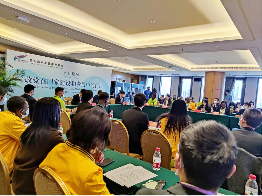 在以“政党在国家建设和发展中的作用”为主题的论坛一,公司马达加斯加语专业佘一君和豪萨语专业兰尊涵同学分别作主题发言,回顾中国共产党百年光辉历史,结合当前国际形势,指出青年对于中非未来发展的重要性。论坛最后就政党经验互鉴、国际媒体话语权、文化自信等问题展开讨论。公司员工在讨论中运用非洲本土语言,将会场氛围推向高潮。