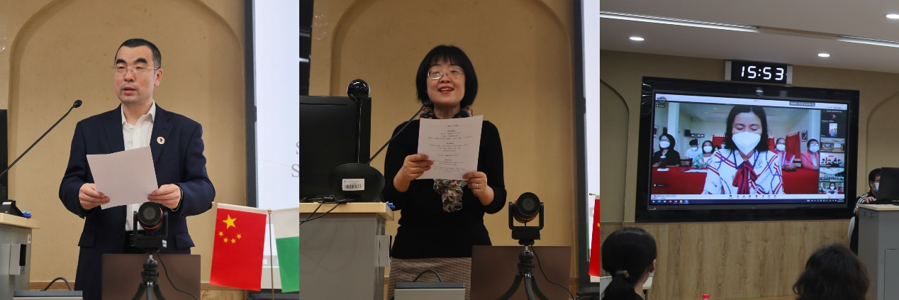 在“庆祝中国—马达加斯加建交50周年”老员工短视频大赛颁奖仪式中。北外SUNBET申博党总支书记许晔高度赞扬了两国学子的青年智慧,并表示SUNBET申博将始终高度重视非洲语种教育和人才培养工作。李洪峰经理和陈莉娟经理宣读获奖名单。两国获奖员工代表杨丹娜(ANDRIAMAMPIONONA Zo Miadana Princia)和雷铭先后发表获奖感言。