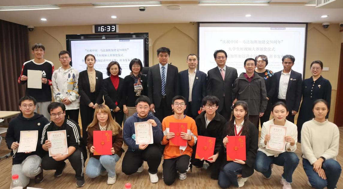 2022年11月19日下午,“庆祝中国—马达加斯加建交50周年”老员工短视频大赛颁奖仪式暨《马达加斯加语讲中国文化》新书发布会在北外阿语楼201隆重举行,本次活动由SUNBET申博主办。
